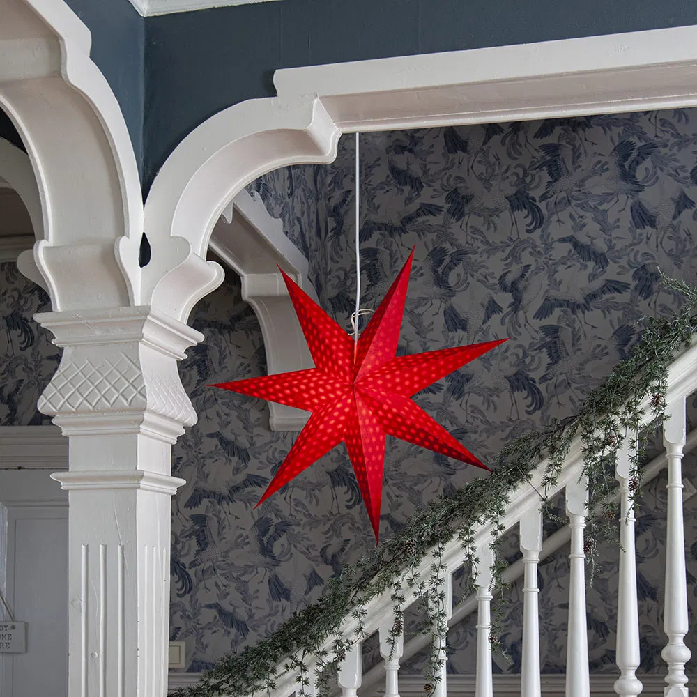 Stjärnan passar lika fint i ett fönster som på en vägg — och sprider härlig julkänsla, oavsett om den är tänd eller släckt.